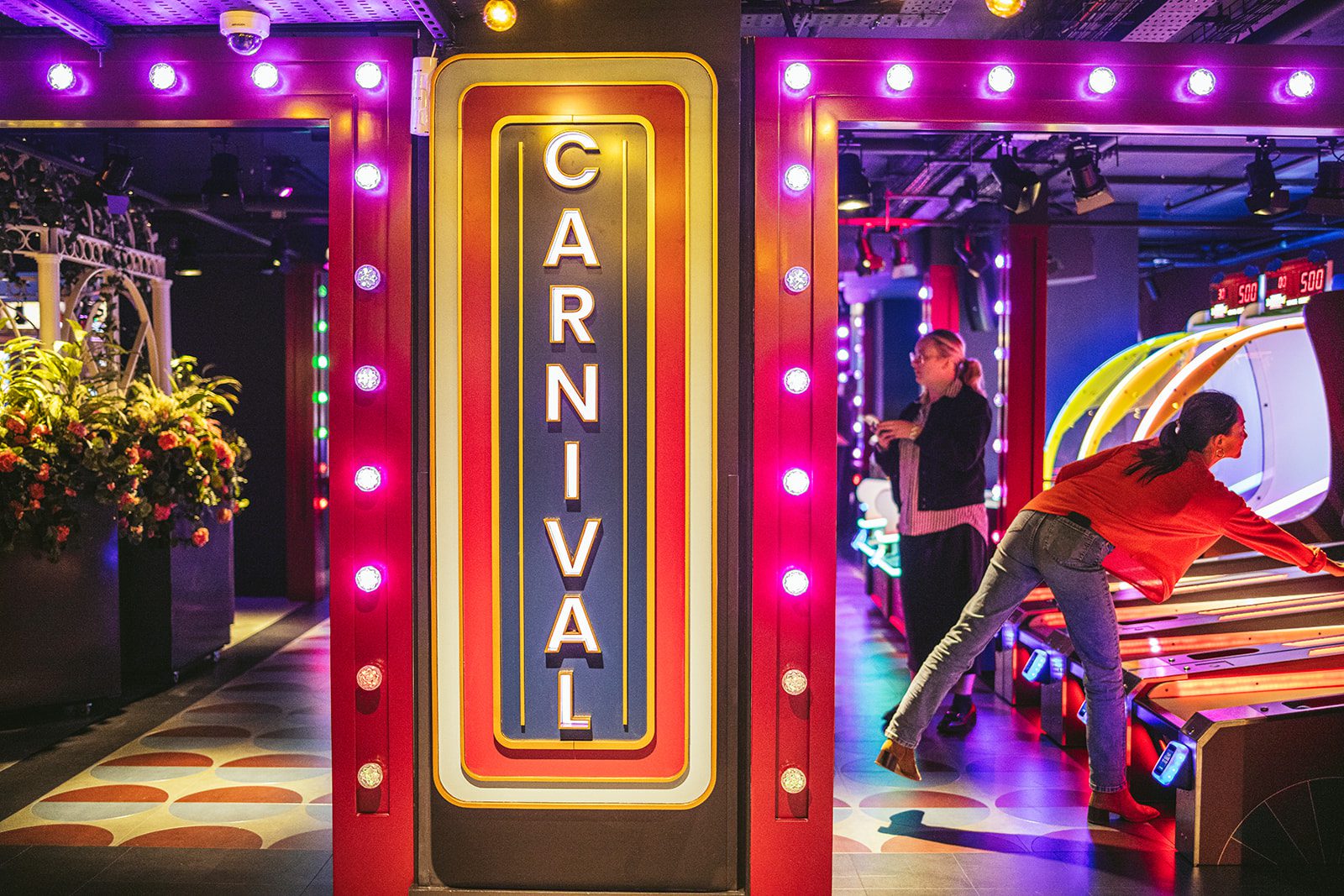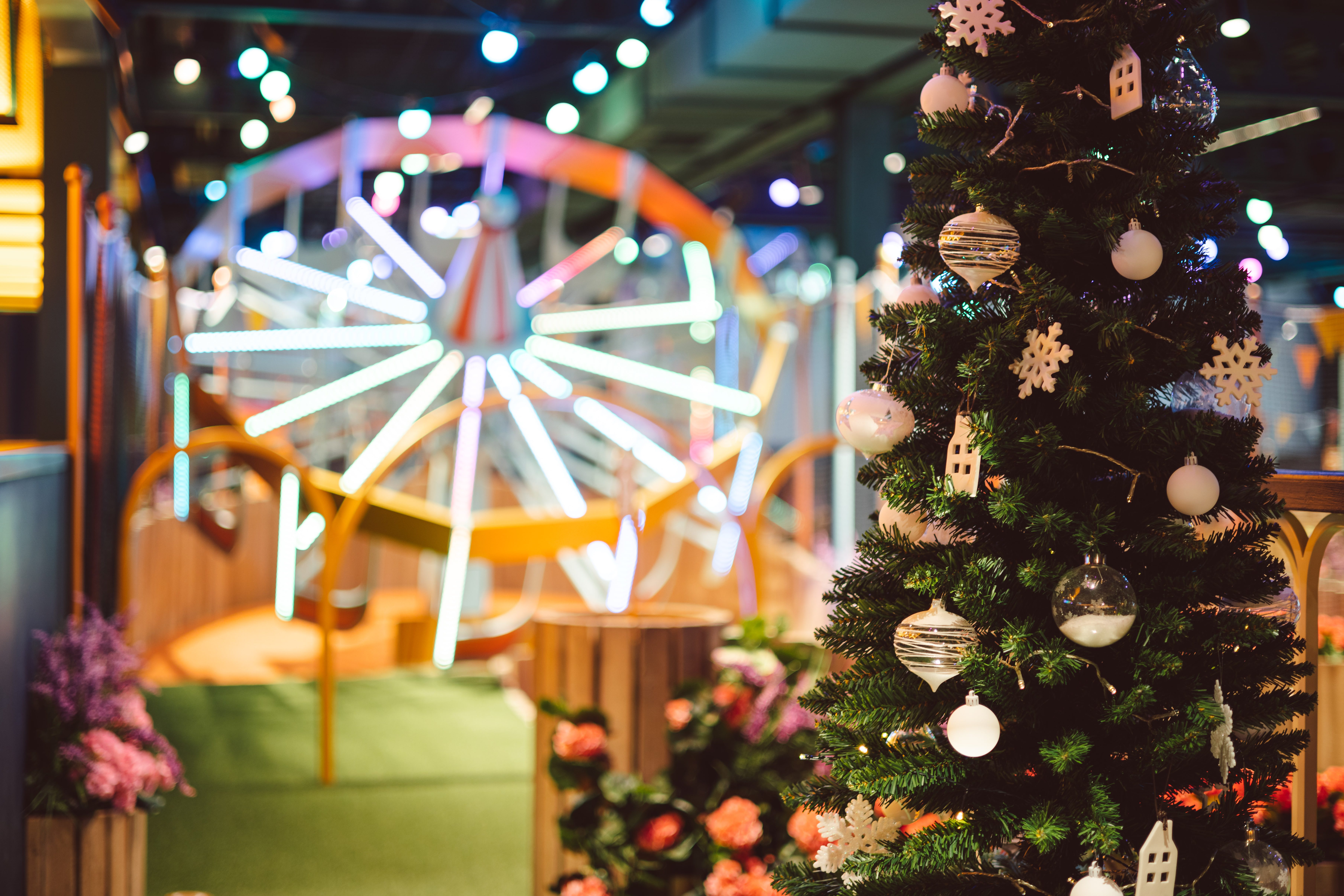 Warm, cheerful, and full of character, we transform our British seaside-inspired funfair into a winter wonderland. Twinkling lights wind around the classic boardwalk façades, Christmas trees are scattered throughout the venue, and the 3D photo podium features a holiday-themed backdrop - all enhanced by mood lighting and live DJs who curate the soundtrack and overall vibe. The result is an evening that’s as memorable as it is fun.