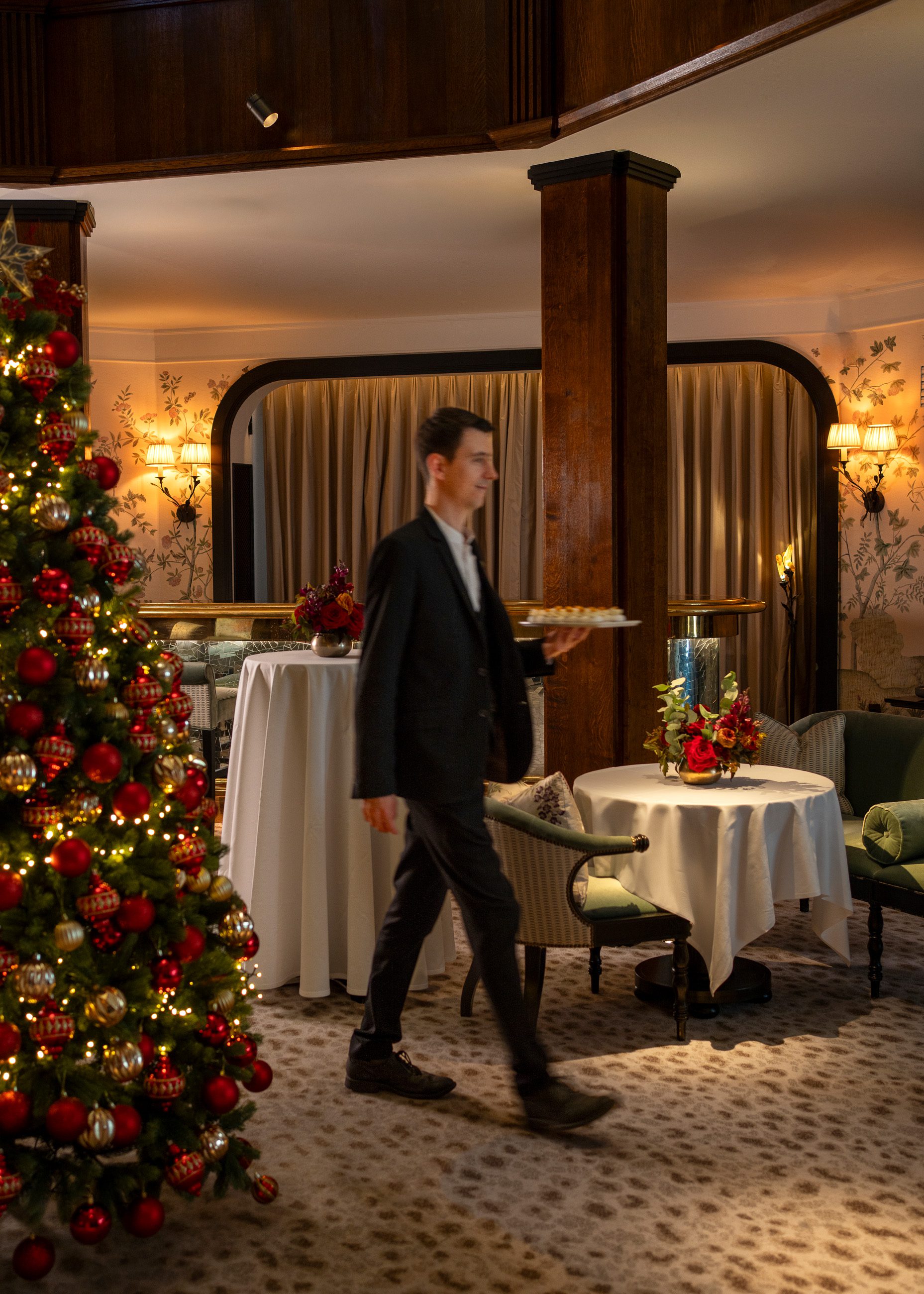 Our Baptist Bar is a standout feature, centred around a glittering mosaic mirrored bar that brings an unmistakable festive sparkle to the room. It creates an elegant focal point that feels celebratory without being overwhelming, perfectly balancing sophistication with seasonal warmth.