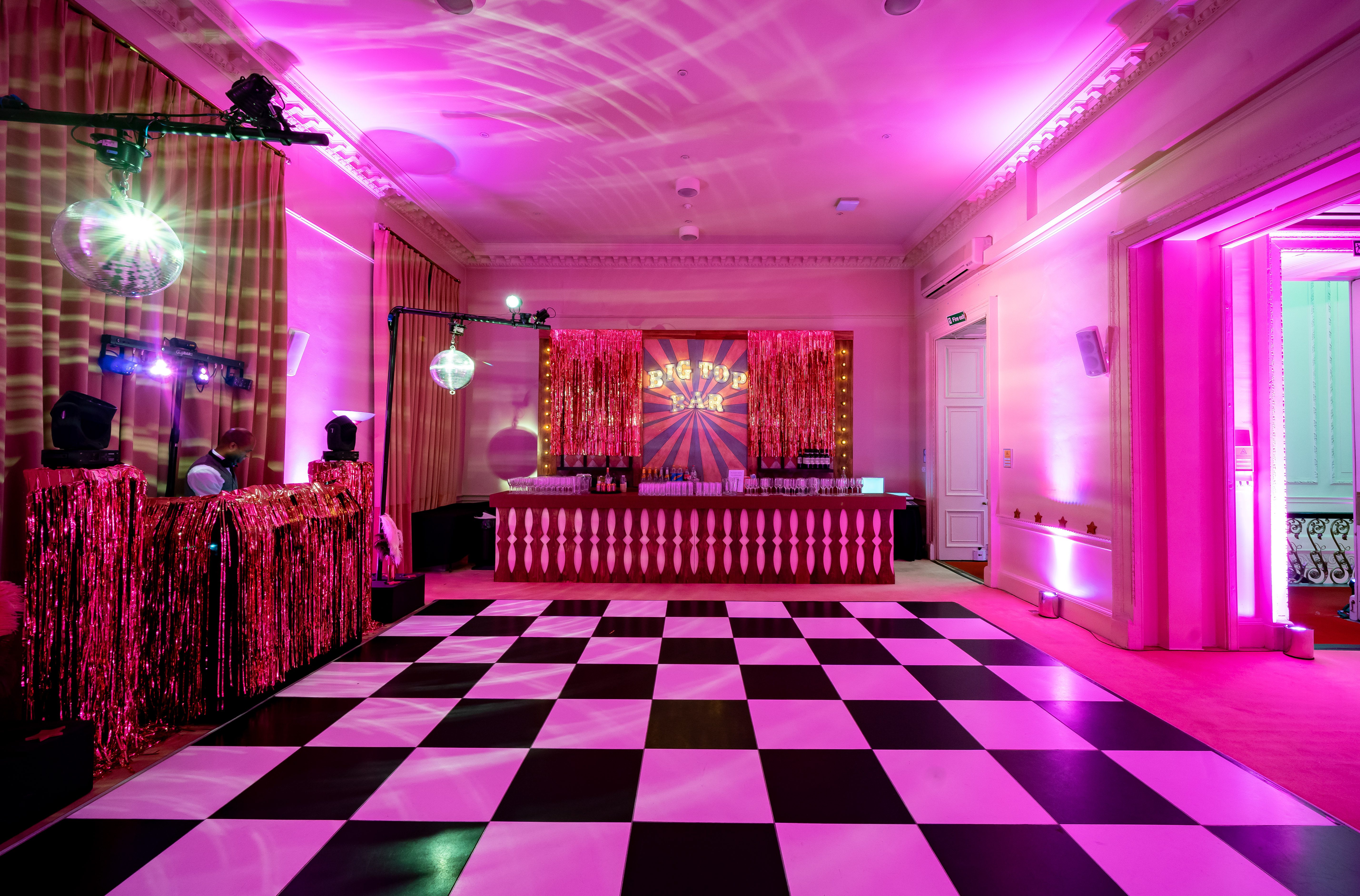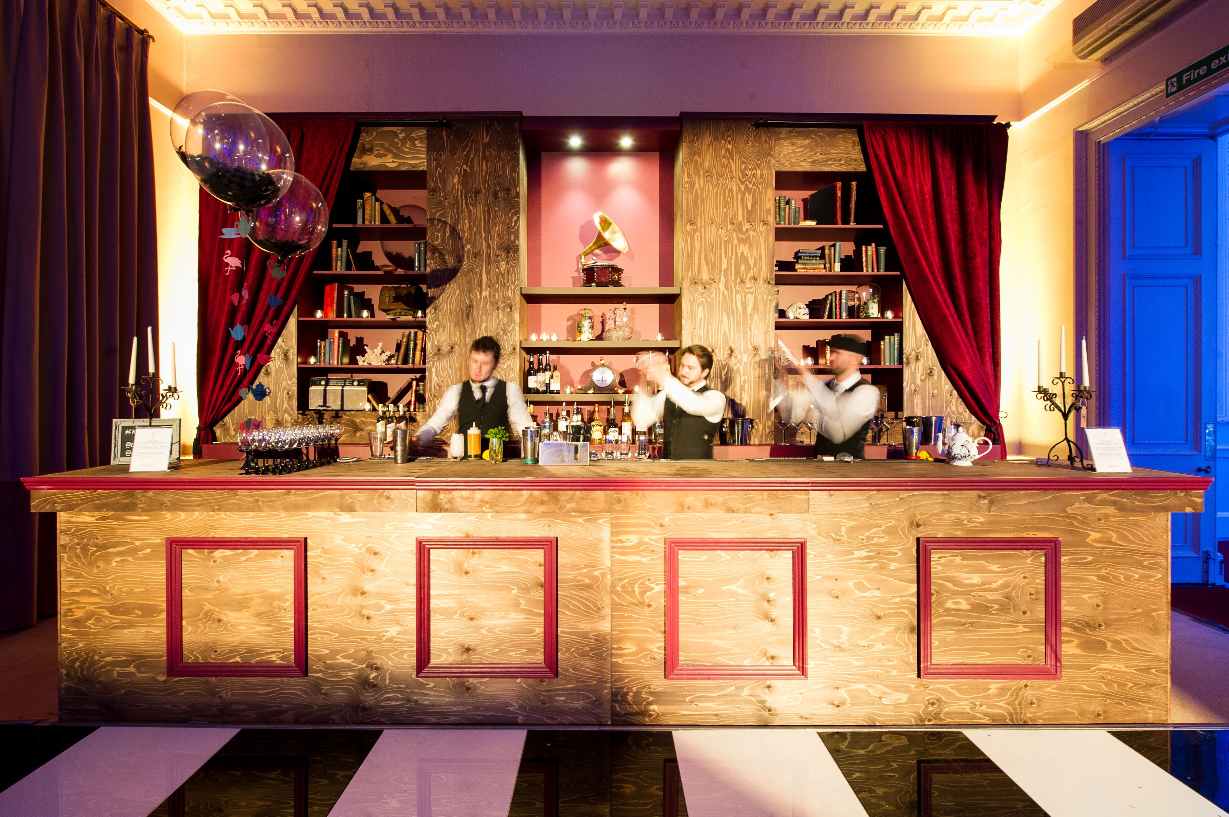 Upstairs, the Atrium and Sanctuary Room transform into immersive dining and dancing spaces. Long or round tables are styled to suit each theme, and every year a bespoke 16ft bar is designed and built specifically to complement the concept, from circus-inspired statements to sleek spy-era glamour.