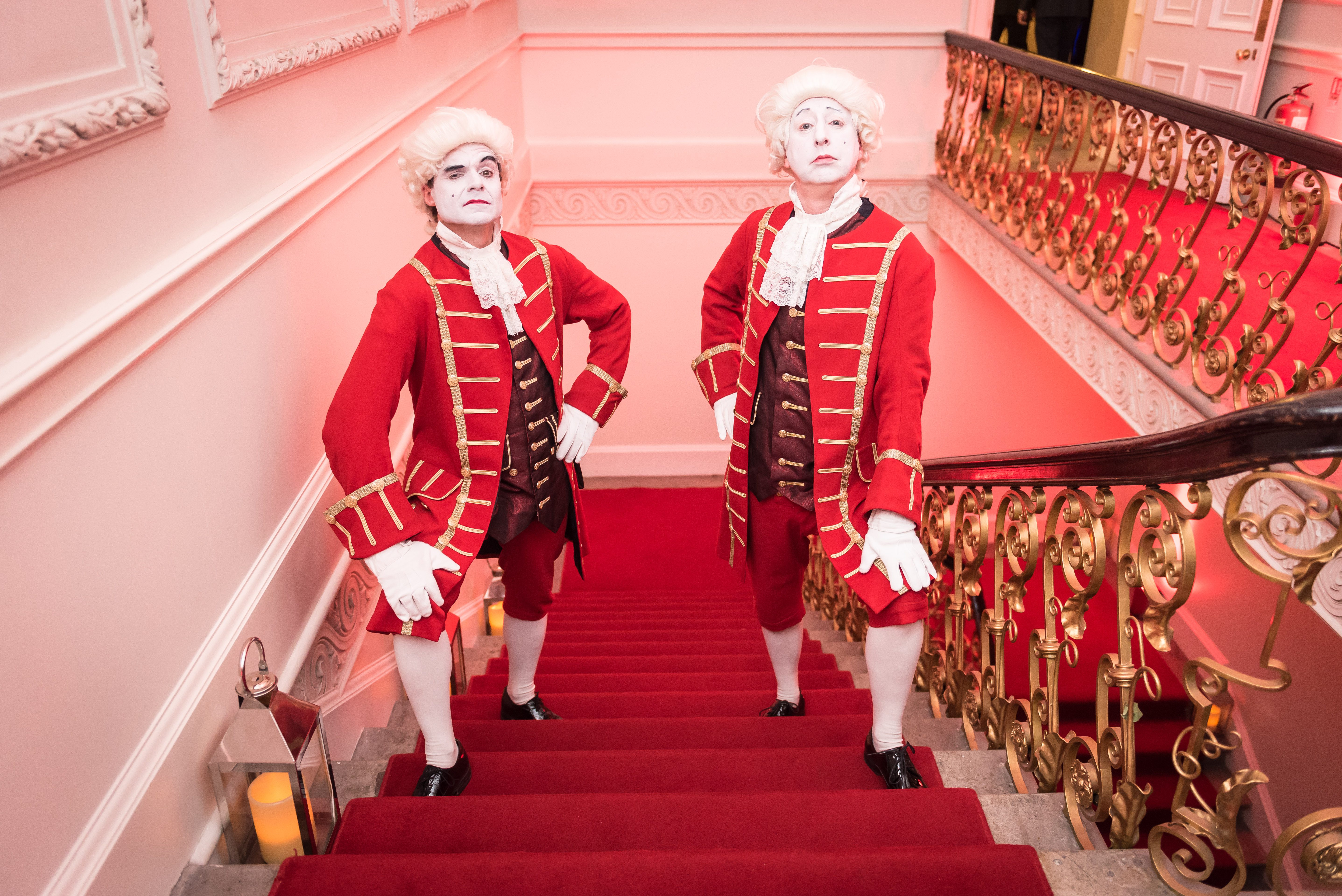 The transformation experience at Kent House Knightsbridge begins before guests step inside. Exterior projections instantly establish the theme, while red carpet arrivals, flambeaux and live performers create anticipation and spectacle.