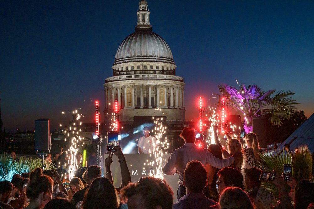 Enjoy rooftop views and a line-up of DJs and live artists at Madison. Our monthly schedule showcases daytime sets, sunset sessions and late-night performances, updated each month with the latest acts.
