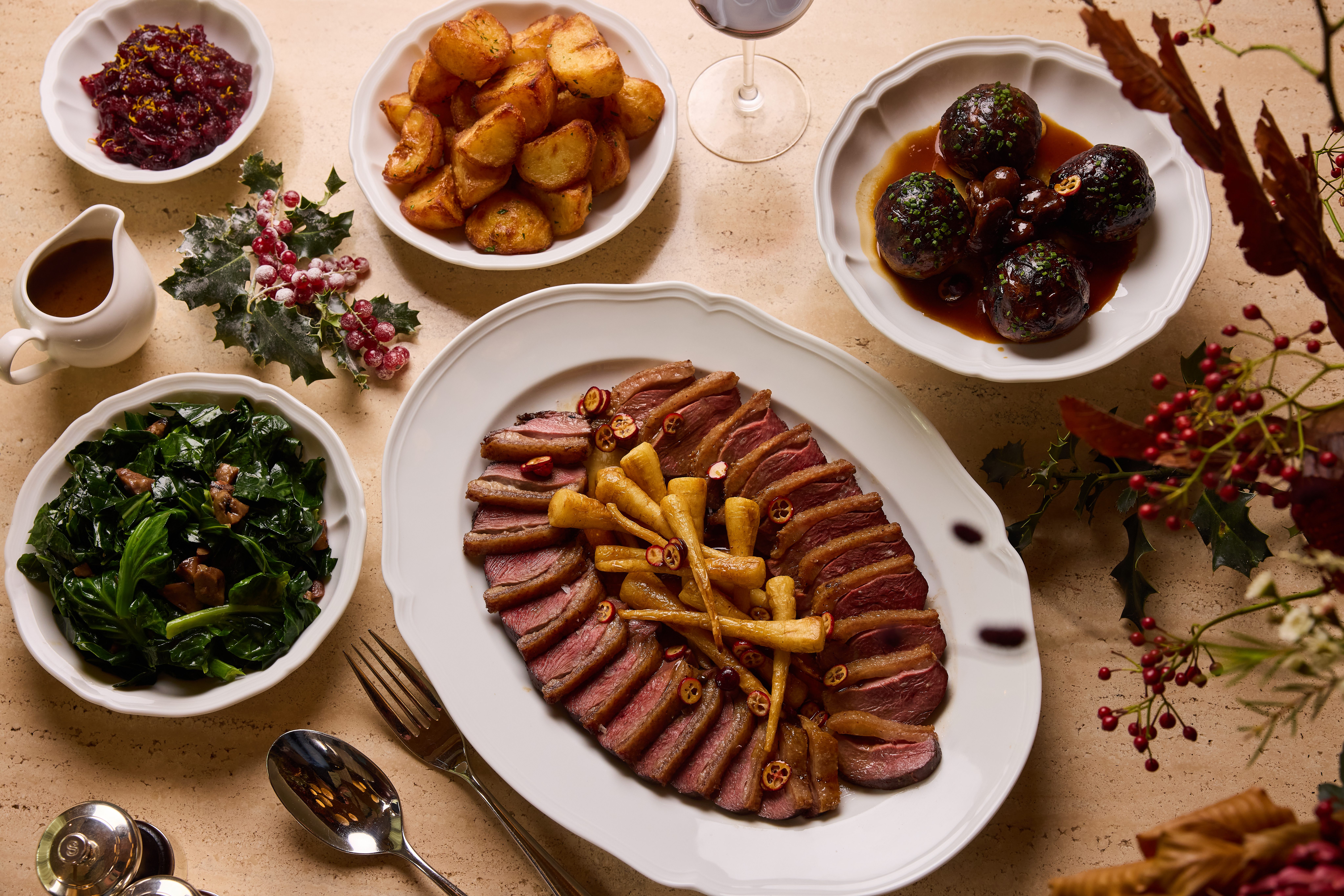 For casual events, our street food menus put a playful spin on festive favourites, including buttermilk turkey sliders and pigs-in-blanket sausage rolls. Those seeking a more traditional experience can opt for three-course dining, featuring elevated classics such as ham hock terrine starters, rolled turkey breast with duck-fat fondant potatoes, followed by indulgent desserts like dark chocolate yule log or Christmas pudding with brandy custard.