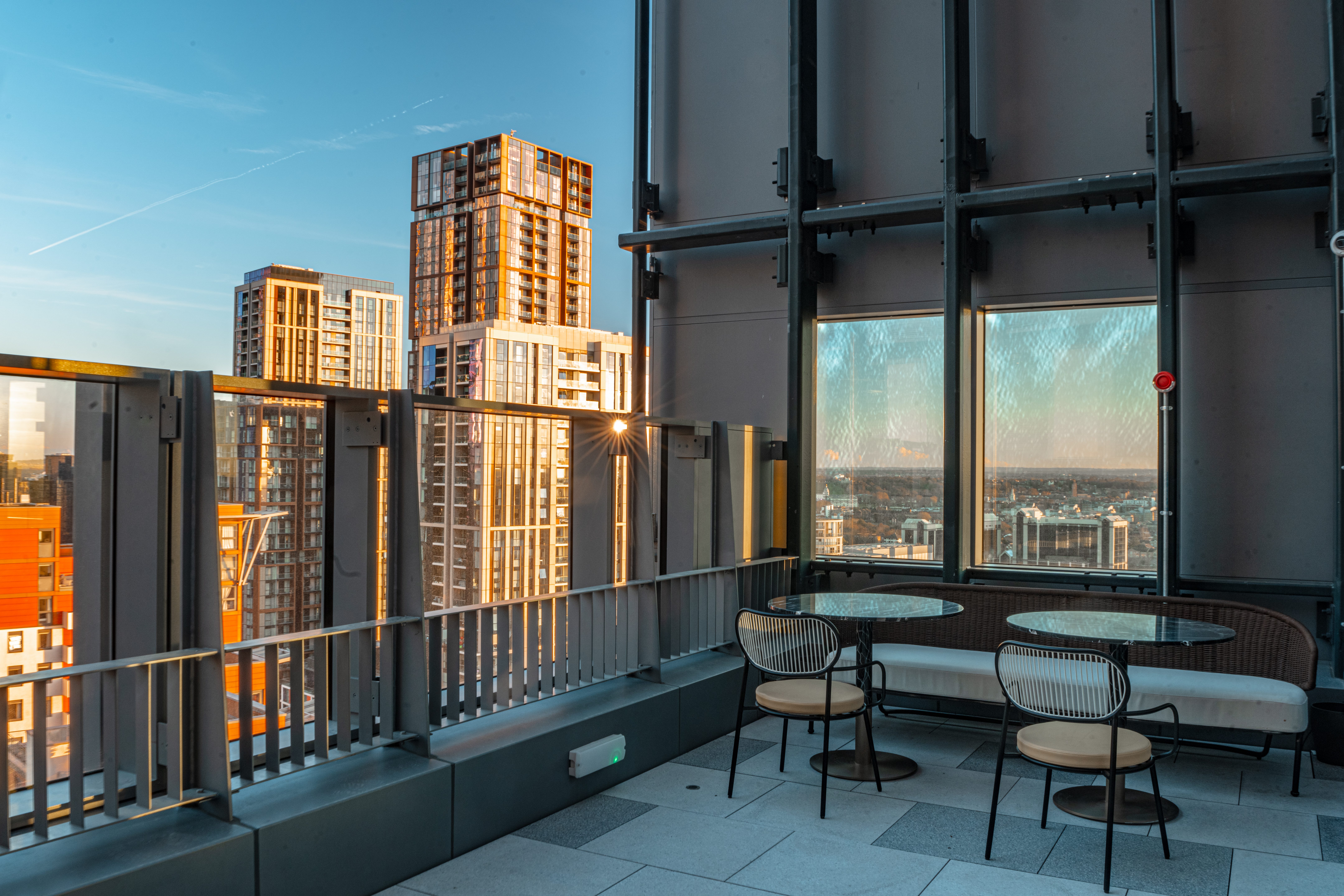 Qibo Skybar is a brand-new, modern rooftop venue designed to feel stylish and social. Set on top of the Dorsett Hotel, on the 25th floor above Canary Wharf, it combines sleek interiors with breath-taking skyline views. Two separate terraces offer different perspectives of the city, while the indoor space provides yet another unique angle.