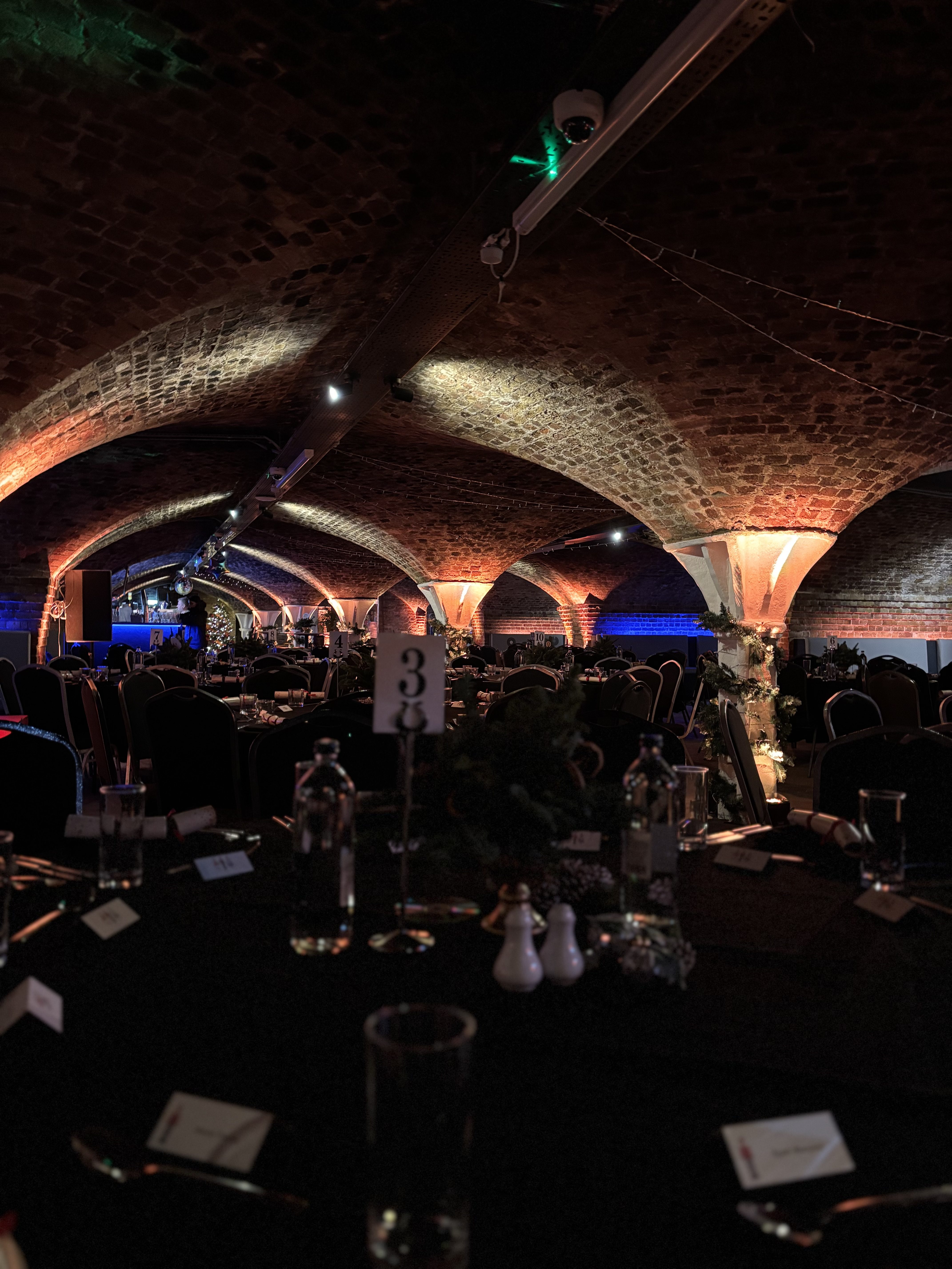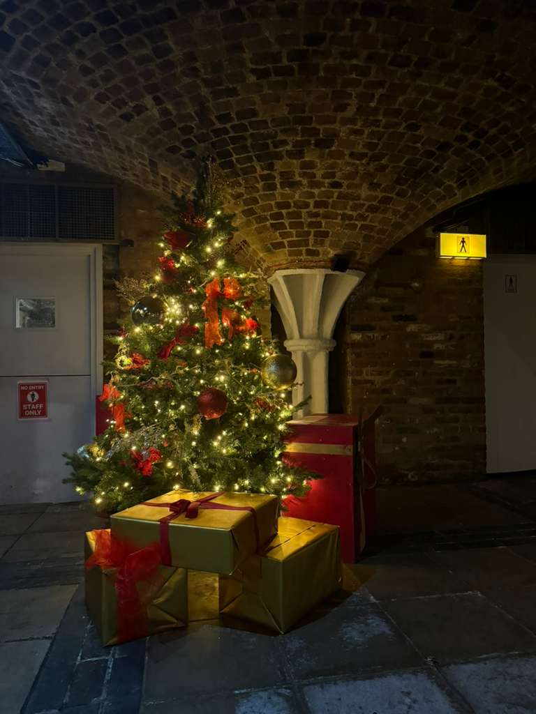 We craft a magical festive atmosphere by layering sensory elements that immerse guests from the moment they arrive. The underground tunnels glow with ambient uplighting and bespoke venue lights, casting warm shadows on the exposed brick for an intimate, enchanting vibe thats equal parts cozy and exhilarating. Christmas trees and decorations add sparkle, while themed table centers and crackers bring playful holiday spirit to every corner. Music pulses through our inhouse PA system, with a DJ spinning festive tunes and a disco inviting everyone to dance, creating an energetic yet relaxed flow. The overall feel is like discovering a secret holiday haven, where the historic setting amplifies laughter and connection. Guests rave about the seamless blend of raw elegance and joy, leaving with stories of an unforgettable night that lingers long after.