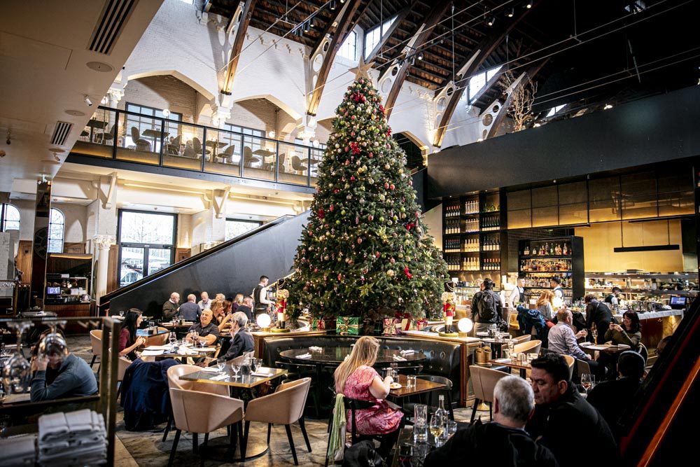 We have made the most of the stunning interior with its 57 foot floor- to-ceiling height. Sympathetically restored to its former glory, it is home to an elegant, contemporary restaurant and events venue boasting a Grand Café, Meister Bar, a vast outdoor terrace, a semi private dining room and two terraces.