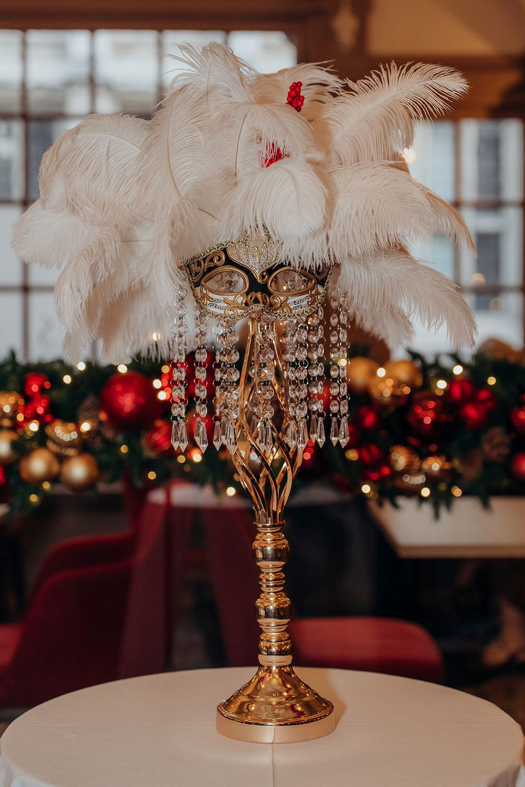 Every year we choose a different theme to transform the venue for the Christmas season. In 2025 the theme was Masquerade Ball.