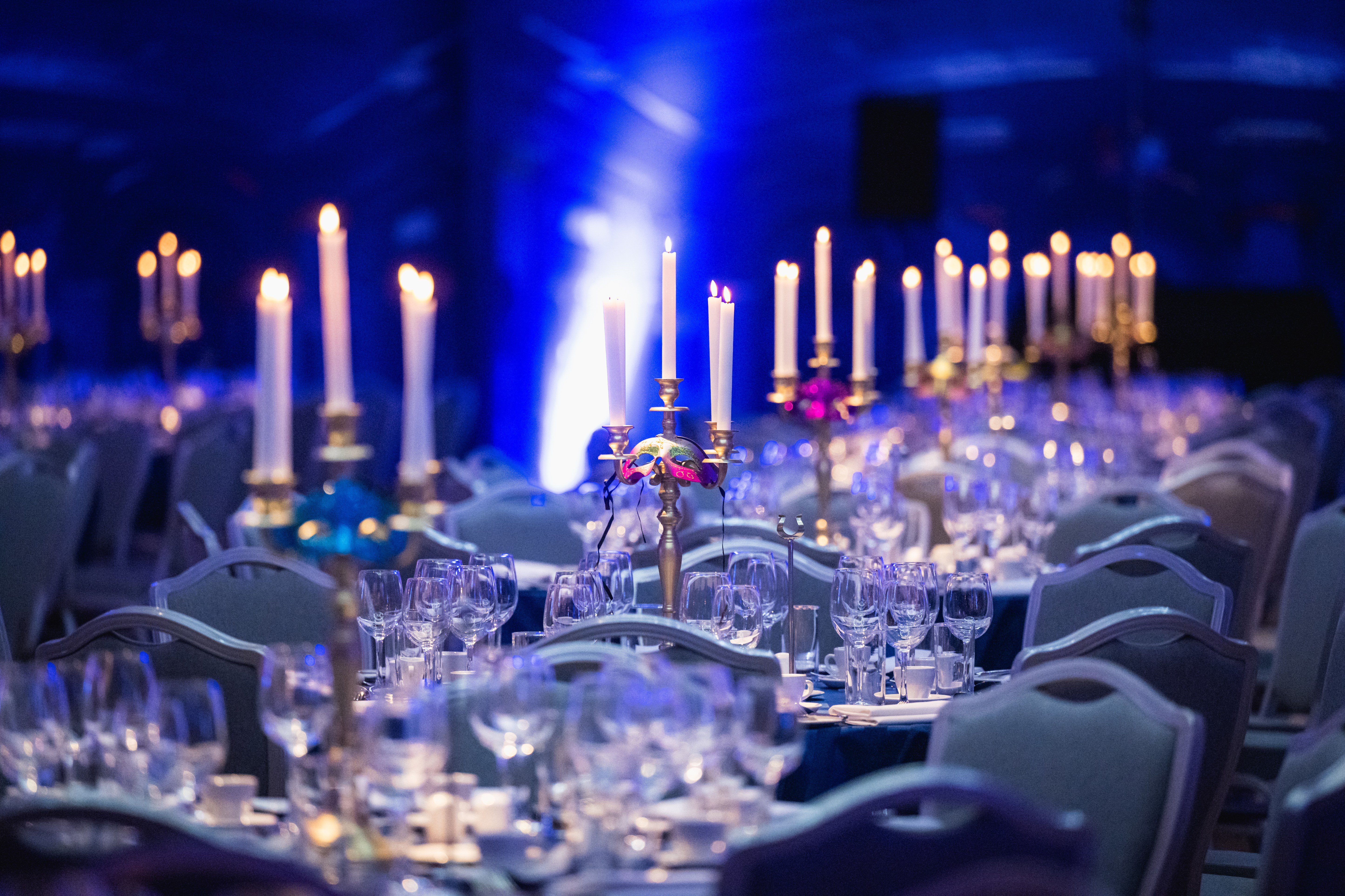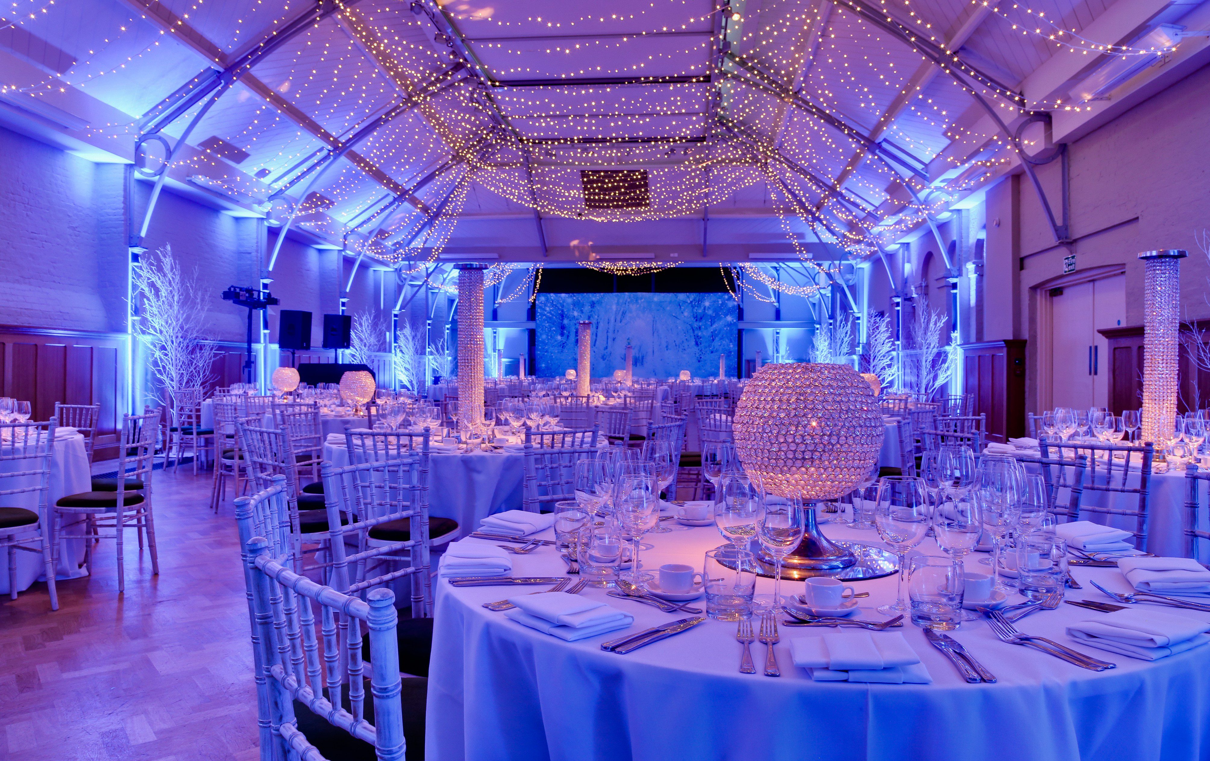 In Hollywood Glamour, the vaulted ceilings of the Prince Consort Rooms become a star‑filled sky with cascading draping and twinkling lights that elevate the space into an elegant cinematic setting. Art Deco styling, tailored lighting schemes and bespoke décor details create a rich, dramatic ambience where guests feel part of a classic film premiere. The theatrical quality of the space invites guests to interact confidently with the environment and one another, enhancing social engagement throughout the evening.